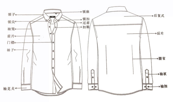 一、襯衫各部位的名稱(如下圖所示)