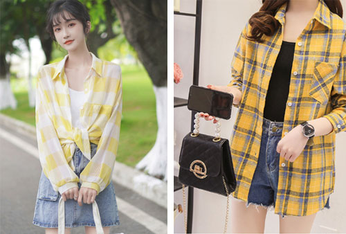 夏季短褲和短裙是最受女生歡迎的,不僅清爽,而且特別顯身材。黃色格子襯衫無論是內搭白色背心或黑色背心都非常的好看,既清爽又不失女性時尚感。