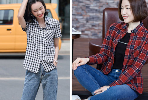 牛仔褲是女生必備的褲子款式,搭配襯衫也是比較常見的,尤其是格子休閑型的襯衫,無論是什么顏色的格子襯衫,搭配牛仔長褲都是不會出錯的。